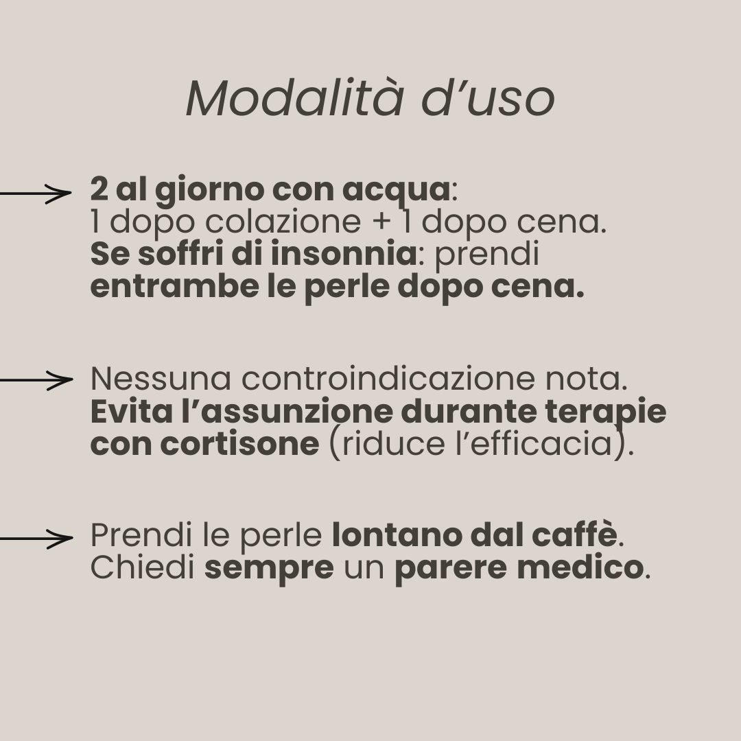 Per l'insonnia consigliamo di assumere la dose di 2 perle giornaliere entrambe dopo cena.