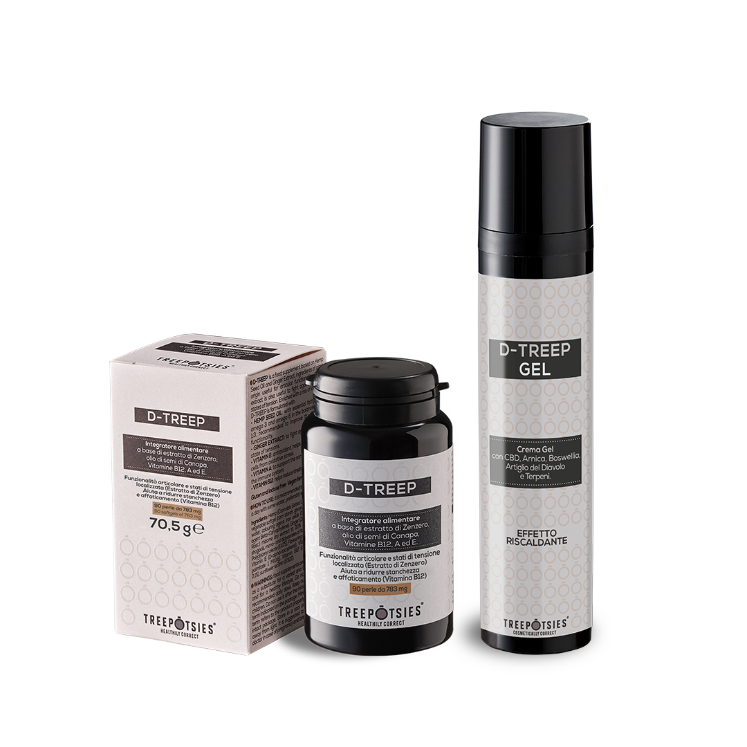 D-TREEP CAPSULE: è un integratore alimentare a base di olio di semi di Canapa ed Estratto di Zenzero suggeriti per favorire la funzionalità articolare.