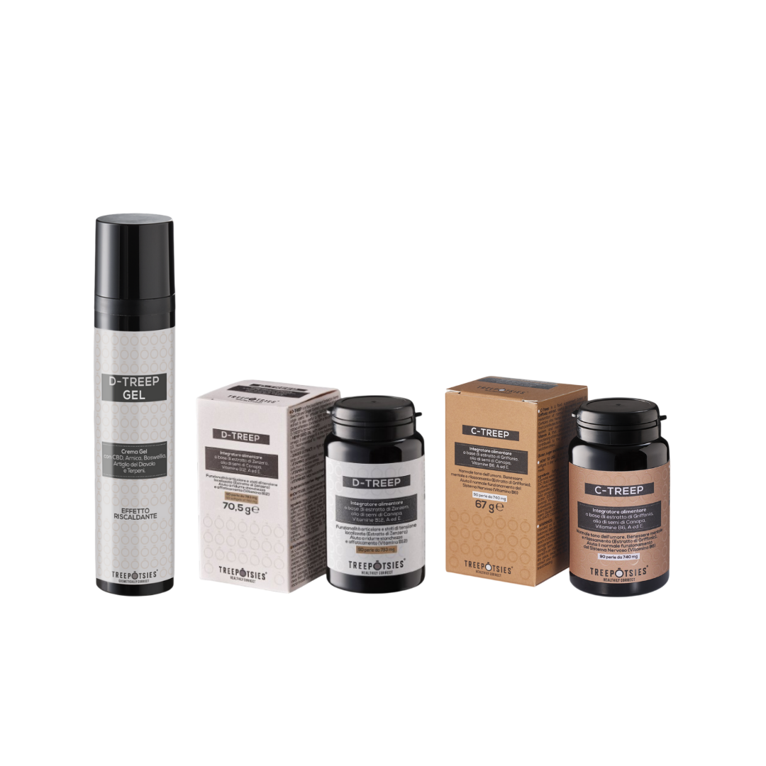 D-TREEP è un integratore alimentare a base di olio di semi di Canapa ed Estratto di Zenzero suggeriti per favorire la funzionalità articolare.